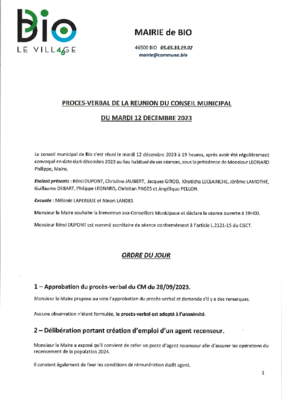 Conseil municipal 2023 12 12