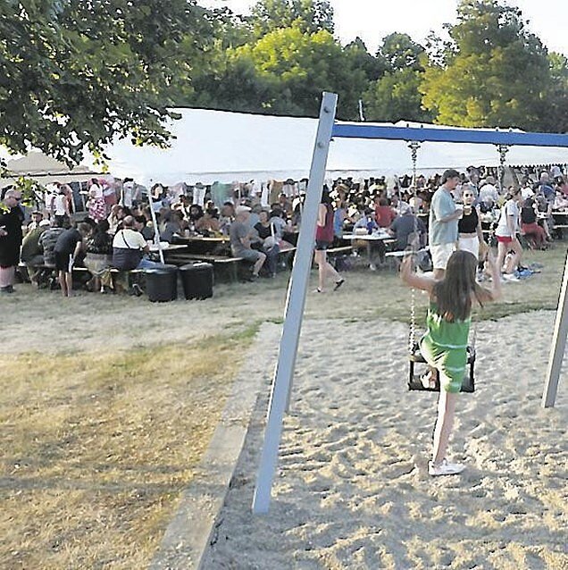 Dès 18 heures, les tables installées en plein air sous les deux barnums étaient rapidement occupées et nombreuses sont les personnes, qui, faute de trouver une place assise, ont pique-niqué sur l’herbe fraîche environnante.